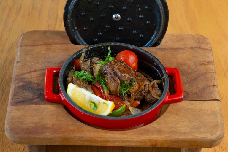 English: Sautéed liver with garlic, peppers, and spices in Egyptian style.